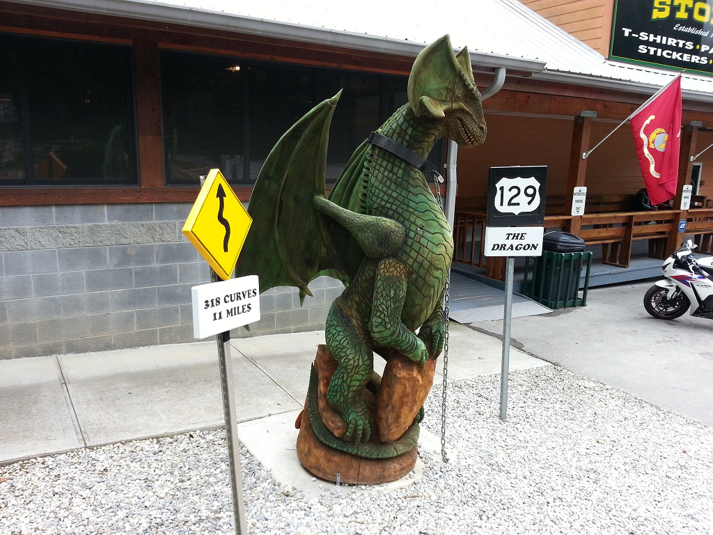 At the southern end of the Dragon is the Deals Gap Motorcycle Resort (http://www.dealsgap.com/) where you can actually stay overnight, or just grab some food, buy a t-shirt, etc.