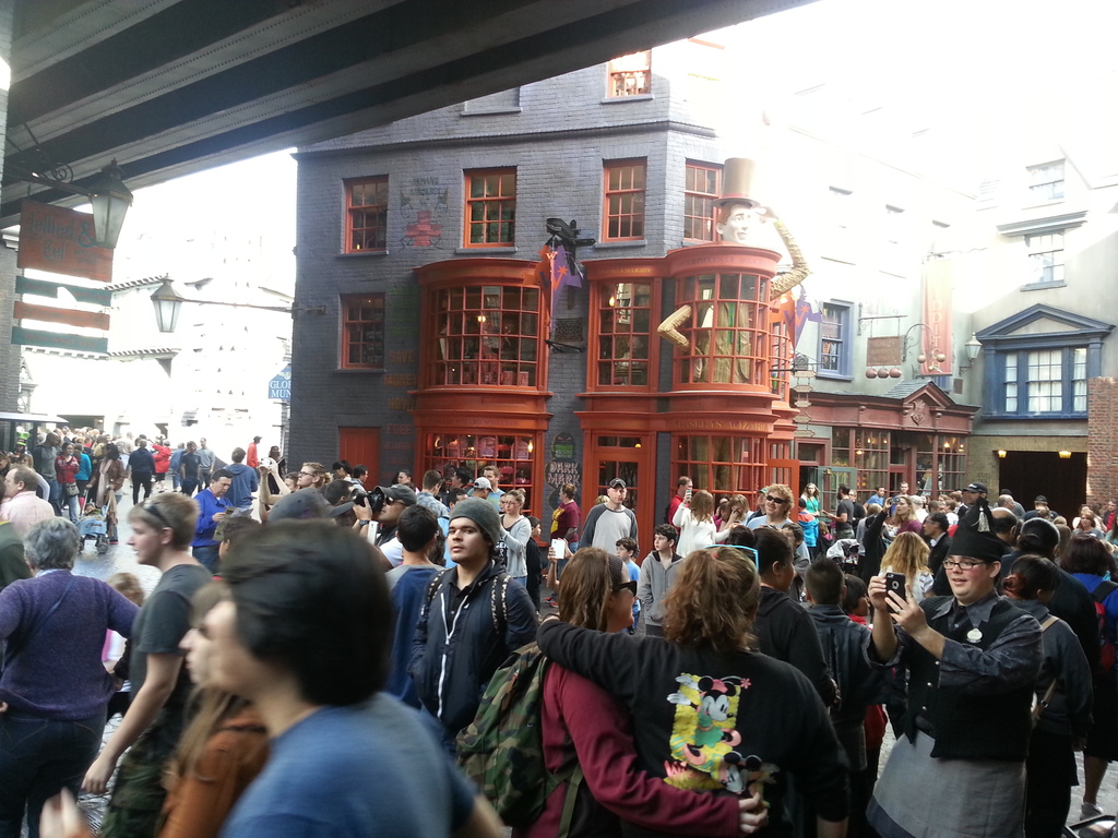 Most annoying were tour groups (mostly Brazillian) who would move through the park as one mob – this made it very difficult to get around where there was restricted space. We perservered, though, trying the famous Butter-Beer (the cold version is a bit like a ginger beer with vanilla cream on top), lunch at the Leaky Couldron, and just generally wandering around visiting most of the shops in the alley-ways.